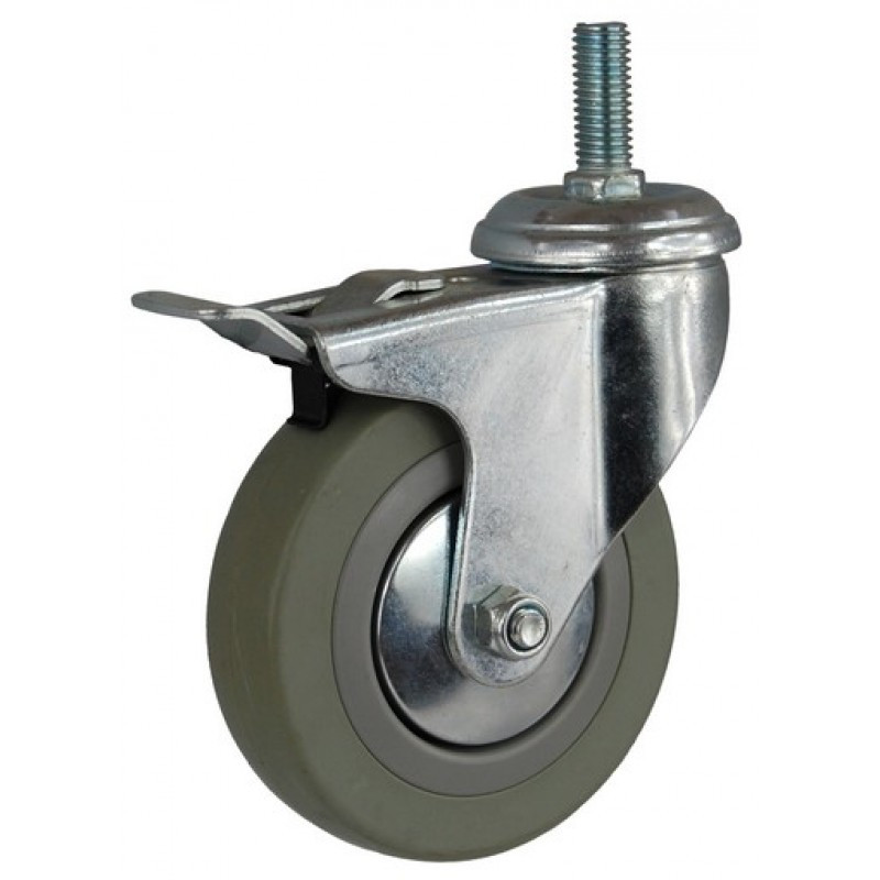 Колесо G 75 (265-100-075) с кронштейном поворотным пластик/резина болт М10 с тормозом